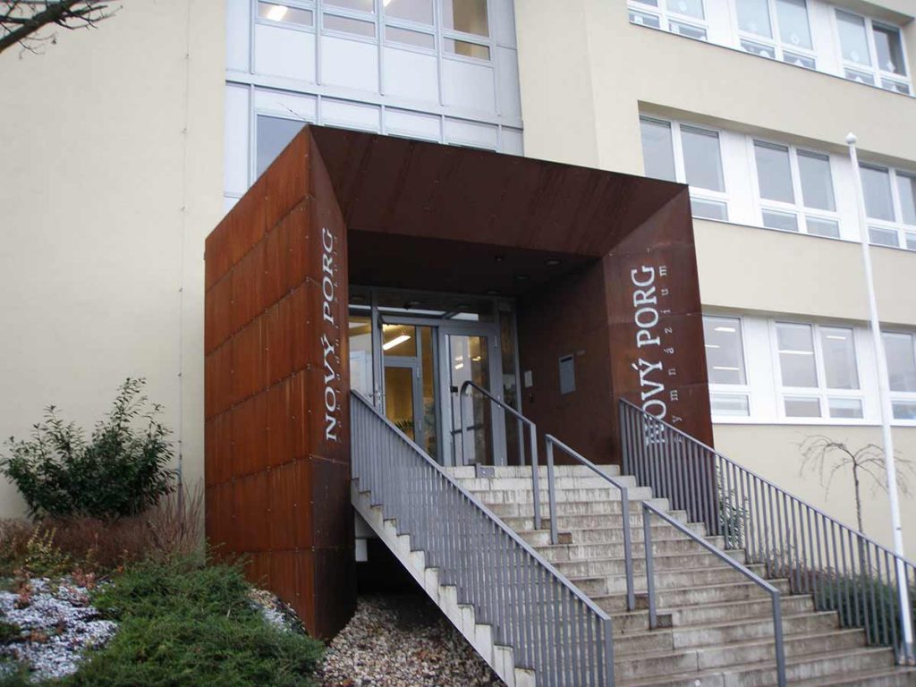 Pohled na objekt čerpací staniceGymnázium a základní škola – Nový PORG